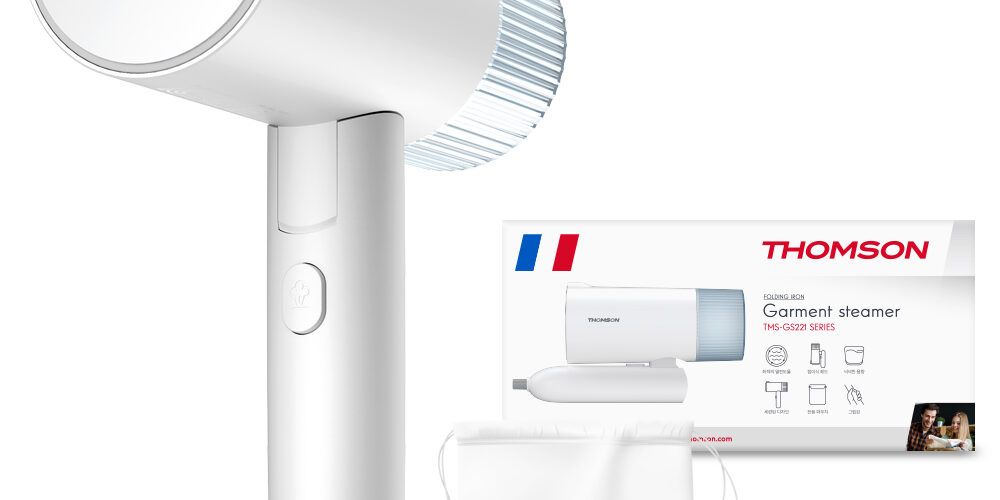 세련된 디자인과 강력한 퍼포먼스를 동시에 원하는 분들이라면 프랑스 톰슨(Thomson)의 TMS-GS221 모델이 정답입니다. 이 제품은 초고속 예열 시스템을 탑재해 단 몇 초 만에 강력한 스팀을 뿜어내며, 접이식 구조로 설계되어 수납이 매우 용이합니다.